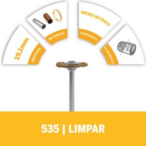 - A Dremel Escova de Latão 535 de 19,1mm é multifuncional para limpeza de materiais.