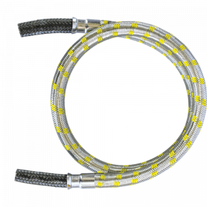 - Revestida com trama inox, oferece excelente proteção contra pressão, torções, abrasão e corrosão, sendo perfeita para uso em fogões, aquecedores, fornos e outros equipamentos a gás.