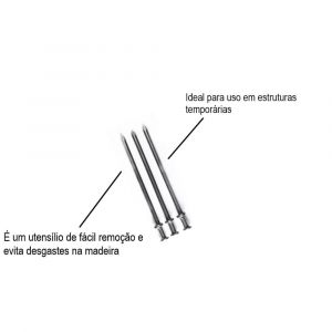 - Ideal para uso em estruturas temporárias, porque não adentra profundamente na madeira.