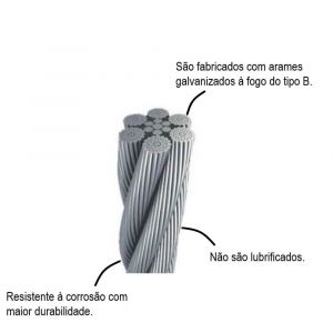 - Maior resistência à corrosão e consequentemente maior durabilidade, cabos galvanizados usualmente não são lubrificados.