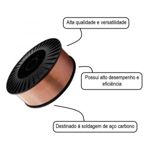 - Arame sólido cobreado destinado à soldagem de aço carbono no processo MIG/MAG.