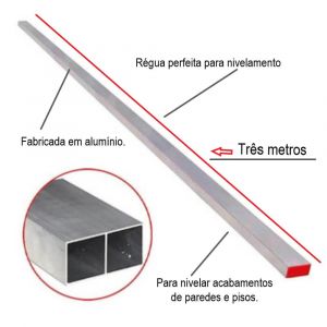 Régua alumínio grossa com 3 metros fabricadas em alumínio, que proporciona perfeito auxilio ao operário e super precisa nos assentamentos de pavers de grandes e pequenas obras. Não perca tempo e garanta já a sua!