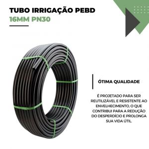 500 Metros de Tubo Irrigação PEBD 16mm PN30 di13,8 2,5bar