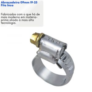 Conteúdo da Embalagem1 Abraçadeira 09mm 19-25 Fita Inca