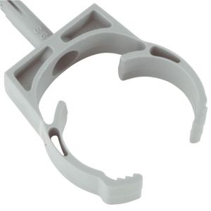 Abraçadeira com Bucha 1 Pol. Plastibox Cinza da Tramontina: Ideal para fixação de tubos e eletrodutos de 1 polegada, com bucha resistente na cor cinza, garantindo durabilidade e segurança em instalações.