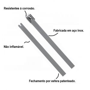 - Abraçadeiras MBT, fabricadas em aço inox 316 com fechamento por esfera patenteado, não reutilizável.