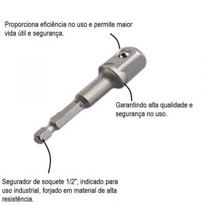 - Segurador de soquete 1/2″, indicado para uso industrial, forjado em material de alta resistência.