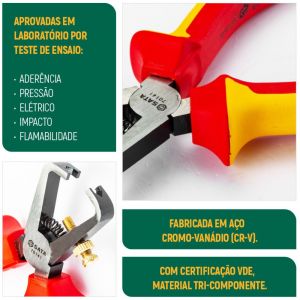 - Alicate Descascador De Fios Vde de 6" SATA com garantia de certificação IEC 60900 oferece ao usuário a mais alta proteção quando utilizadas em trabalhos de alta voltagem.
