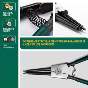 Conteúdo da Embalagem1 unidade de Alicate para Anéis Externo Bico Reto 7'' Sata