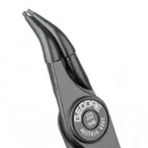 Corpo em aço Gedore-Vanadium e empunhadura plastificada na cor azul padrão Gedore. Acabamento escurecido. Alicate com pontas fixas e curvas 45º. Para anéis de segurança internos conforme norma DIN 472 e DIN 984.