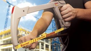 Arco de Serra Extra-Tensão Exact Plus 145- Starrett -Apoio frontal anatômico. -Injetado em alumínio, mais leve e resistente. -Exclusiva alavanca tensionadora e cabo fechado. -Cabo anatômico emborrachado especial texturizado. -Quatro pinos permanentemente montados que permitem cortes retos e em ângulo de 45°. -Suporta alta tensão da lâmina (cortes mais precisos). Indicado: -Pedreiro, -Encanador, -Eletricista.