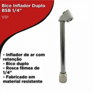 Conteúdo da Embalagem1 Unidade de Bico Inflador Duplo BSB 1/4" Vip
