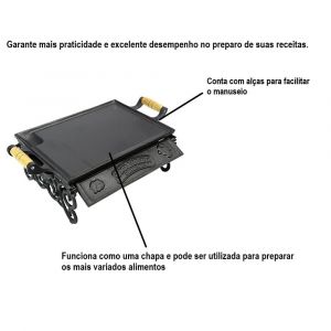 - Perfeita para o preparo de diversos tipos de alimento em geral, principalmente em fritar ou grelhar bifes, mantendo o alimento aquecido e minimizando o uso de óleo no preparo do mesmo.