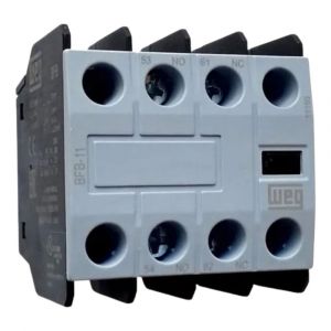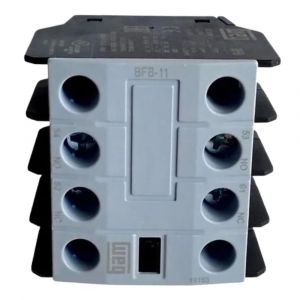 - O bloco auxiliar BFB-11 frontal 1NA+1NF é projetado para expansão de contatos em contatores, permitindo maior flexibilidade em circuitos de comando, intertravamento e sinalização.