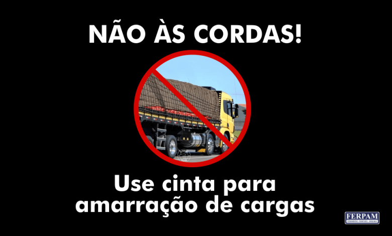 Não às cordas! Use cinta para amarração de cargas.