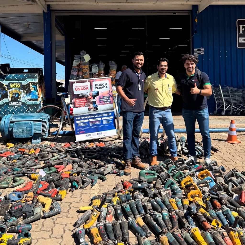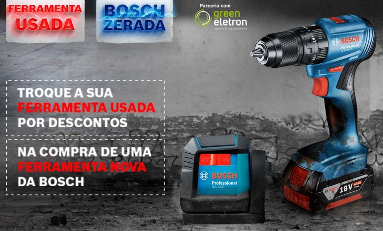 O que é: Campanha de troca de ferramentas usadas por vouchers de desconto em máquinas Bosch novas.