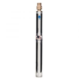 Motobomba submersa acoplada em motor elétrico lubrificado a óleo projetado para operar dentro d’água em grandes profundidades. Captação de água potável em poços profundos tubulares com diâmetro mínimo de 4".