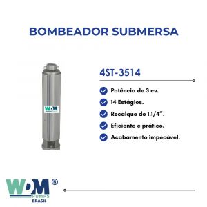 O Bombeador Submersa WDM 4ST-3514, equipado com um motor de 3,0CV, é ideal para aplicações robustas de bombeamento de água. Projetado para poços profundos e sistemas de irrigação, oferece alta eficiência e durabilidade.