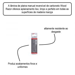- A lâmina de plaina manual reversível de carboneto Wood Razor também permite trocas de lâmina rápidas e fáceis com um posicionamento perfeito da lâmina sem complicações.