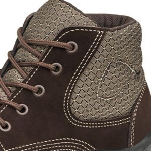 - Bota de segurança com proteção elétrica e mecânica, confeccionada em couro nobuck, com estrutura fibrosa e micro porosa que ajuda a manter a temperatura dos pés.