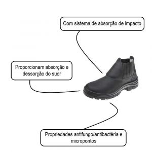 - Bota de segurança confeccionada em couro, biqueira de polipropileno ou aço.
