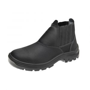 - Bota de segurança confeccionada em couro, biqueira de polipropileno ou aço.