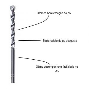 - A ponta de metal duro torna a broca mais resistente ao desgaste.