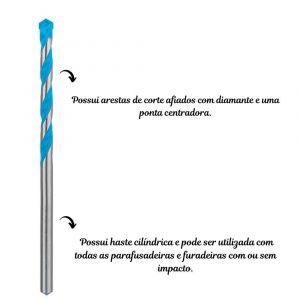 - A broca EXPERT CYL-9 MultiConstruction possui haste cilíndrica e pode ser utilizada com todas as parafusadeiras e furadeiras com ou sem impacto.