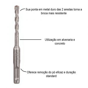 É compatível com todos os martelos rotativos que possuam suporte SDS plus. Sua ponta em metal duro das 2 arestas torna a broca mais resistente. Confira já!