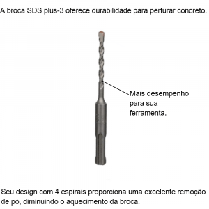 - A broca SDS plus-3 oferece durabilidade para perfurar concreto.