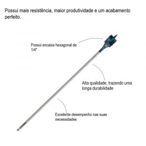 - Possui design inovador da ponta cônica em rosca auto-perfurante permite que a broca entre com mais facilidade no material trazendo maior velocidade na perfuração com menos esforço, além da ponta em formato de espada que possibilita a rápida remoção de material durante a aplicação, sendo até 10 vezes mais rápida do que brocas comuns.