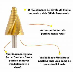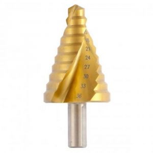 - Garante uma transição suave na forma de um degrau, o que permite que você obtenha um orifício perfeito com o diâmetro desejado.