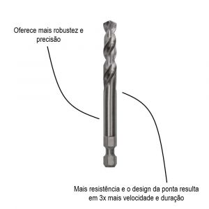 - A Broca de centrar em HSS G oferece mais robustez e precisão. O diâmetro maior resulta em mais resistência e o design da ponta resulta em 3x mais velocidade e duração.