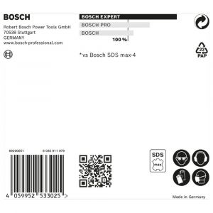 - A broca para concreto Bosch SDS Max-8X oferece 50% mais durabilidade até nas aplicações mais duras.
