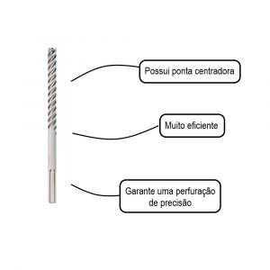- Sua ponta maciça em carbeto de tungstênio com 4 arestas de corte garantem desempenho e resistência excepcionais em concreto armado.
