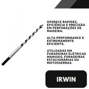 Conteúdo da Embalagem1 Unidade de Broca Rápida para Madeira de 1/2 Pol. X 28 cm Irwin.