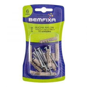 Conteúdo da Embalagem1 Unidade de Bucha De Nylon Com Parafuso Cabeça Panela 06mm Bemfixa