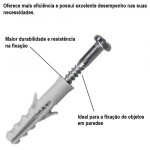 Garante melhor performance e mais segurança nas instalações, excelente qualidade ótima resistência e ideal para aplicações mais pesadas, podendo ser fixada tanto em materiais ocos quanto sólidos. Adquira já o seu!