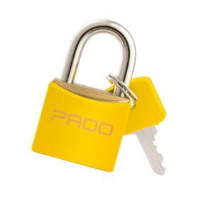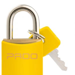 - Possui acabamento esmaltado na cor amarela, que além de dar um toque diferenciado, facilita a identificação em meio a outros cadeados.
