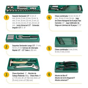 Conteúdo da Embalagem1 Caixa com Jogo de Ferramentas 70 Peças ST95104A70-6 Sata.