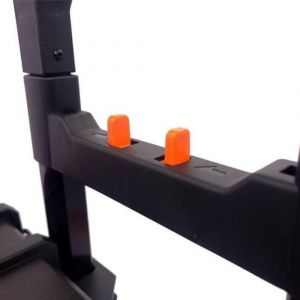 - Possui estrutura reforçada, travas de segurança e design funcional que permite empilhamento e transporte prático.