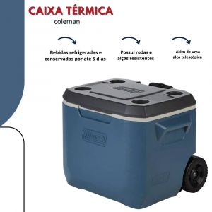 Caixa Térmica 47,3L Azul Com Rodas 50QT