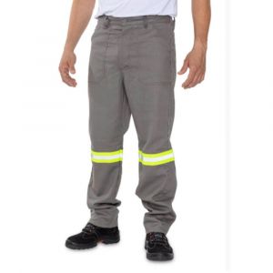 - Possui fechamento botão retardante a chama, braguilha botão com proteção, cós traseiro elástico de 50mm, 7 passantes, 2 bolsos frontais tipo carpinteiro, 2 bolsos traseiros chapados, reforço entre pernas, com ou sem faixa refletiva.