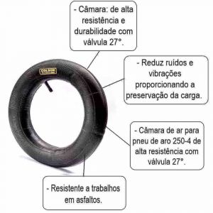 - Câmara de ar para pneu de aro 250-4 de alta resistência com válvula 27°.