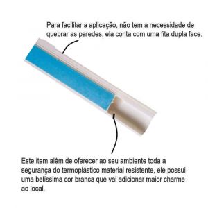 - Sua instalação é muito simples de realizar, essa canaleta conta com fita dupla face para realizar a fixação de modo fácil e rápido garantindo um ótimo acabamento sem quebrar paredes.