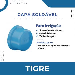 A Capa Soldável Tigre de 35mm é ideal para sistemas de irrigação, garantindo conexões seguras e duráveis. Feita de PVC de alta qualidade, oferece resistência e fácil instalação.