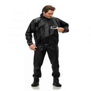 - Um conjunto formado por jaqueta e calça tamanho M, ambos com refletivos de segurança e fabricados em PVC de 0,30 mm.