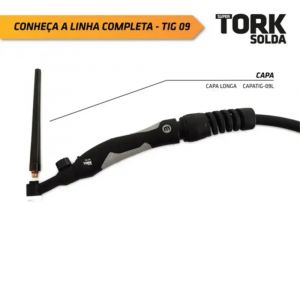 Capa longa para tocha TIG 09 Tork, ideal para fixação e proteção do eletrodo de tungstênio. Proporciona melhor ajuste, maior alcance e estabilidade durante a soldagem. Fabricada com material resistente, garante durabilidade e desempenho no uso profissional.