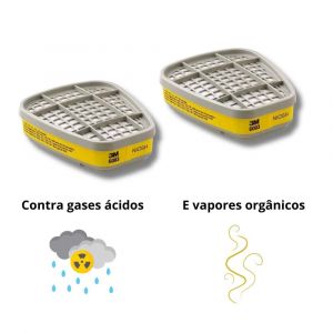 - Proteção contra vapores orgânicos, gases ácidos, dióxido de enxofre, amônia, mais poeiras, névoas e fumos.