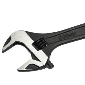Chave Ajustável Extralarga 8" com abertura até 50% maior que as convencionais, feita em aço cromo-vanádio, com punho largo, ajuste preciso, alta resistência e acabamento oxidado que protege contra ferrugem e garante durabilidade.